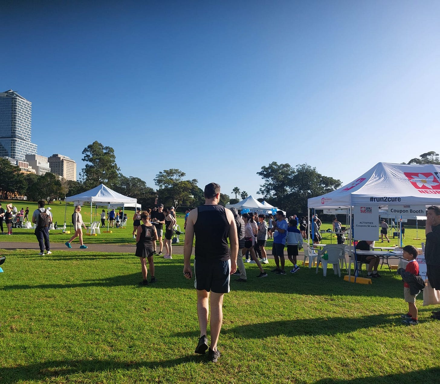 It was so chilly in the morning. I was a bit nervous; despite running 10km five times before, I was still not feeling confident. When we arrived at the Domain though, the vibes made me so happy and excited. There were lolly stands, music, and some family fun activities. Sydney City was invaded by a crowd of runners on the most quiet day of the week.