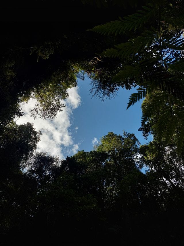 I remember a continuous steep descent until we were fully buried in a rainforest. The temperature suddenly drops, so rug up. From a dry-looking landscape, we found ourselves among the rich shades of green very quickly. At the bottom of the canyon, when you look around, grey rocks reach to the sky and sparkle with drips of water running over their crinkly surface. What a sight!