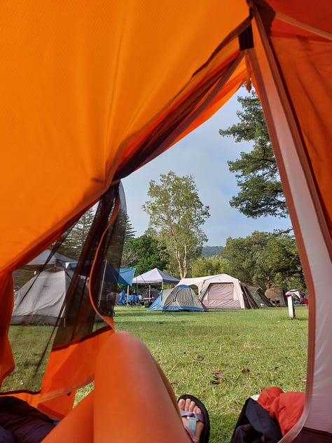 We did not get on the ferry from the Bonnie Doon Wharf. Apparently, the ferry comes once every 2 hours, and swimming across to the Basin Campsite would take a shorter time. I am not joking. That’s what we did.