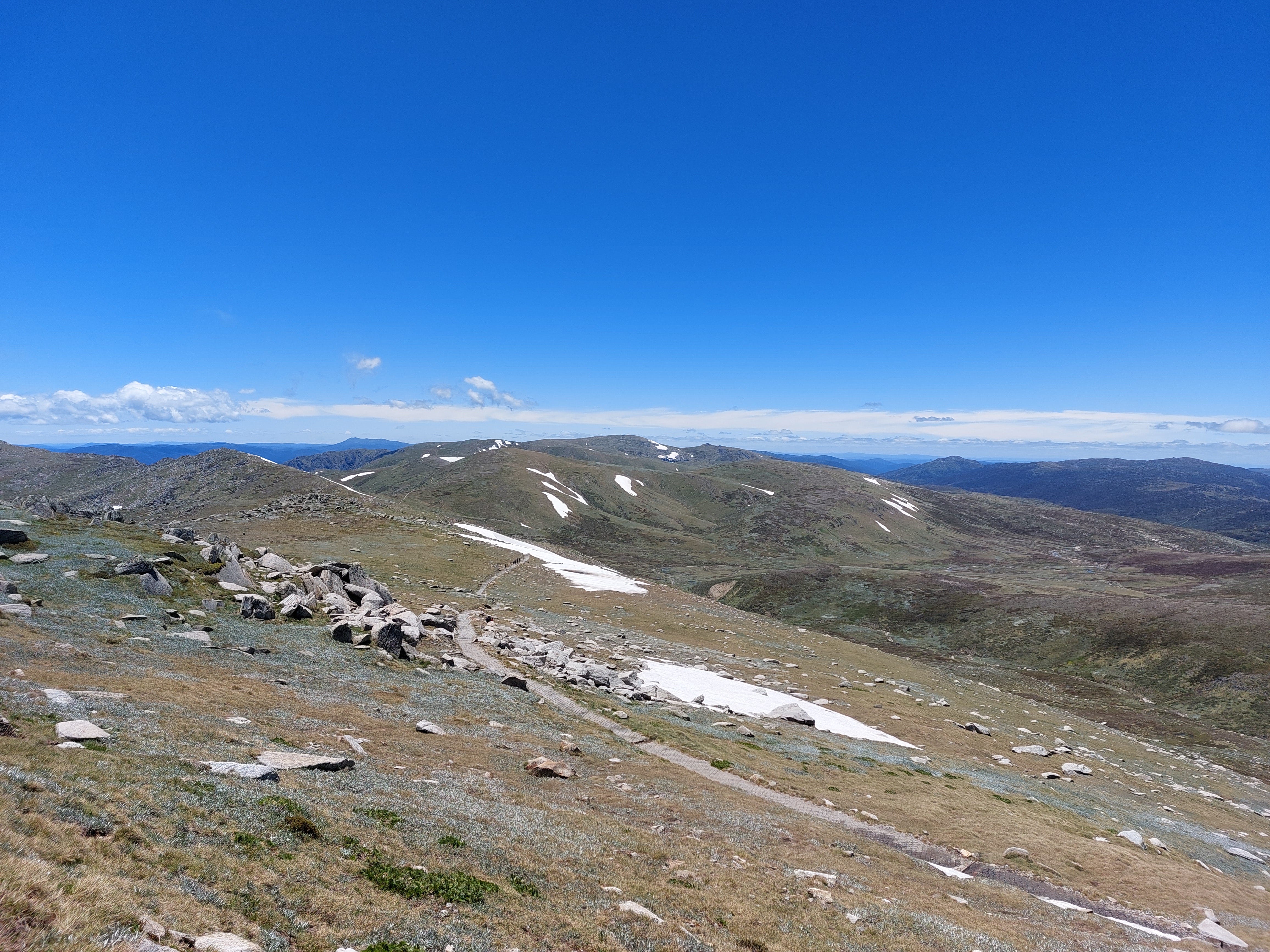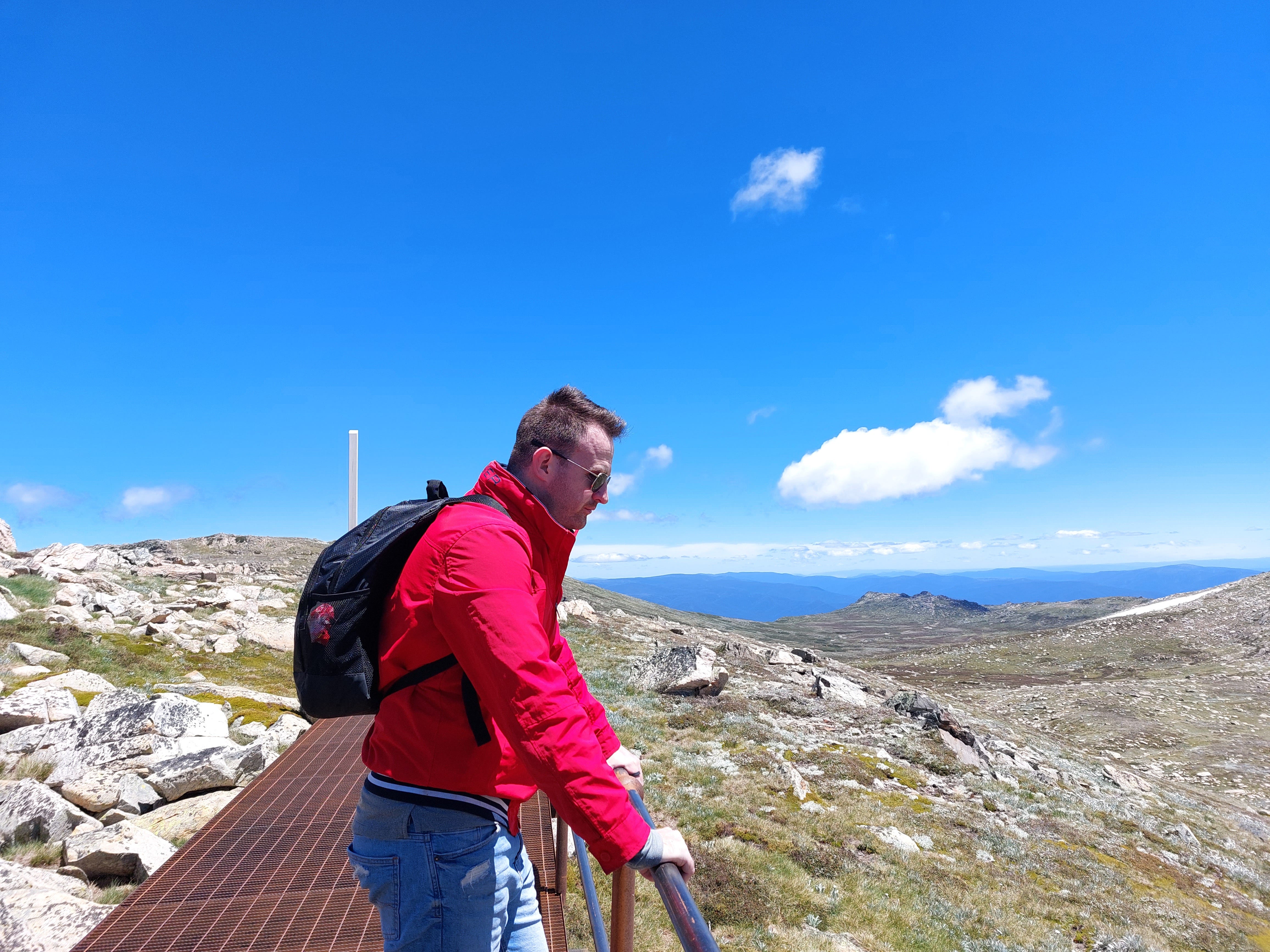 This might be the most iconic hike in the region. It starts from the top of the Kosciuszko Express Chairlift. It was a lovely 15-minute ride. We completed it in late December 2022, when we were very unfit and inexperienced but very excited to get into this hiking business.