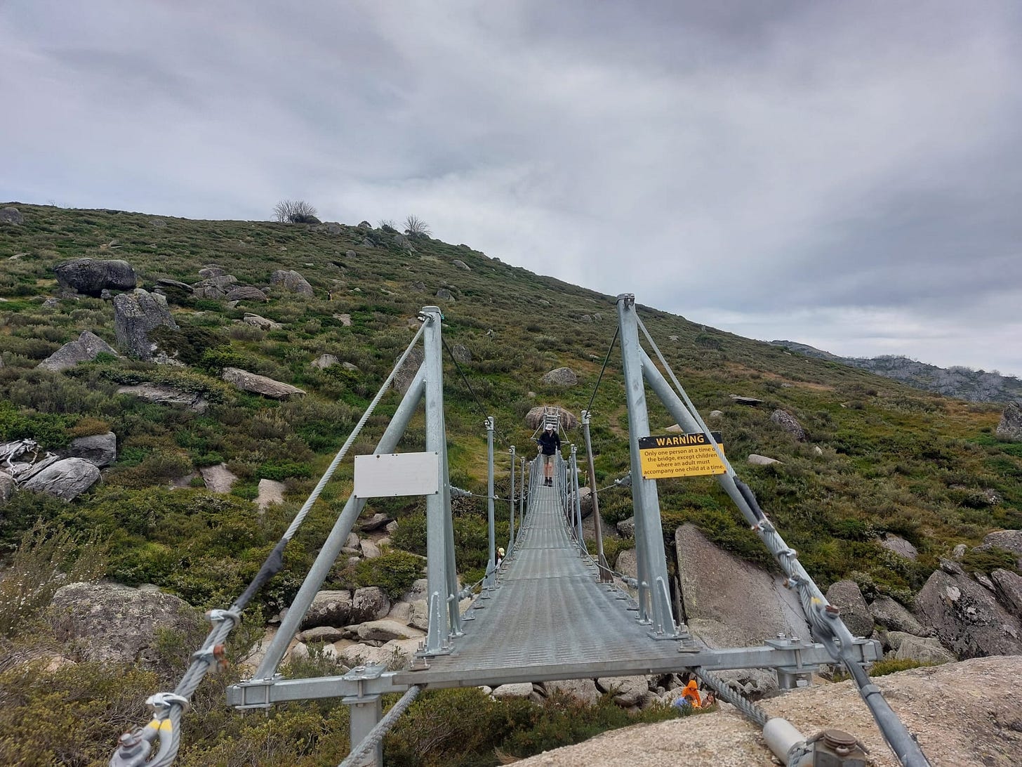 Considered a “challenging” route by All Trails with an average time of 8 hours (no exact equivalent in NSW National Parks website) - 21.1km (although we extended it out to about 24km) - for more information and hiker review, see https://www.alltrails.com/trail/australia/new-south-wales/guthega-swing-bridge-loop