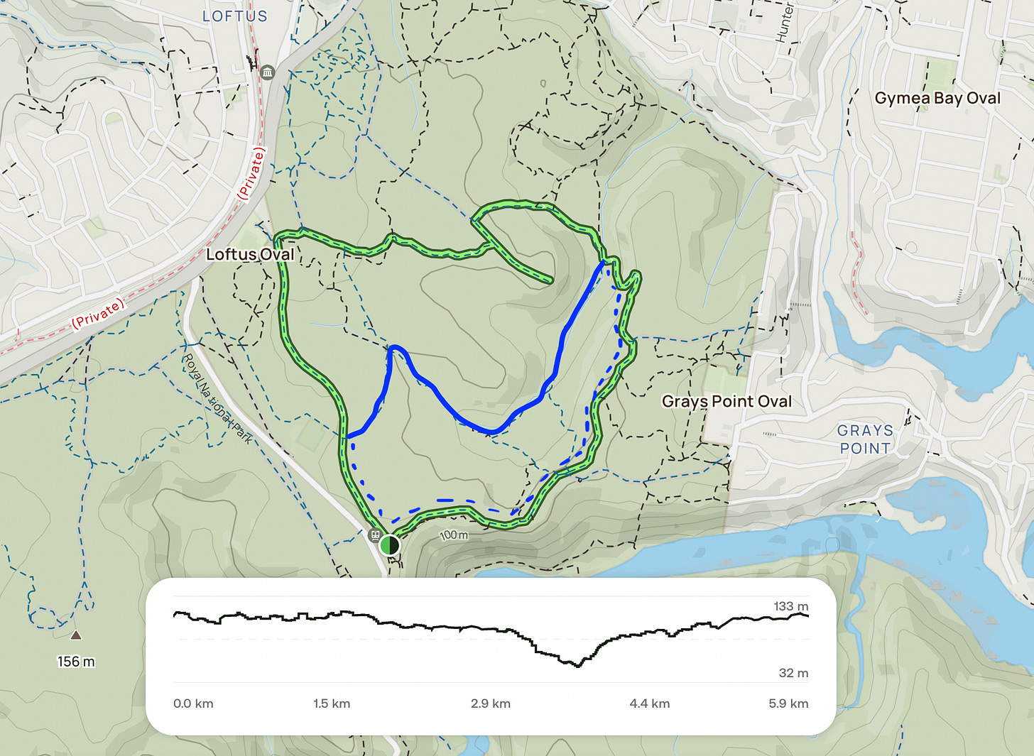 Another hike I found on All Trails. It’s a 5.6km easy loop (takes 1h 30 mins - 2h 30 mins approximately) with a 160m elevation gain. https://www.alltrails.com/trail/australia/new-south-wales/grays-point-to-audley-loop-via-hacking-river