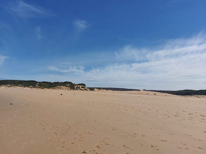 “Marley Beach is big with tall white sand dunes, wild ocean waves, seagulls exploring and seaweed washed up. It looked like an isolated planet.”