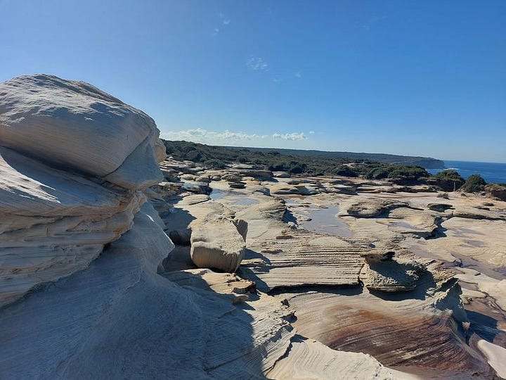 Easy and popular route that’s slightly up and down on sandy, dry and rocky terrain. As mentioned under the review of the Jibbon Head and Shelly beach Loop, the white sand is lovely (unless you have sore ankles), rock formations are cool, and the ocean views are stunning.