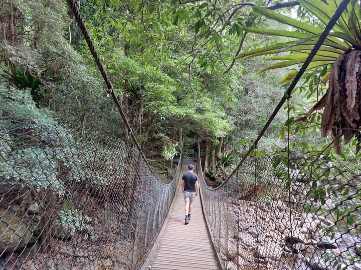 On this trail, I learned about ‘Shinrin-yoku’ (Japanese forest bathing) — “the practice of immersing oneself in nature to enhance physical and mental wellbeing.” There was an information sign in the rainforest to describe the scientific evidence behind how being present (mindful) in nature enhances emotional well-being. I was like, yes, that’s exactly why I do this every month. Nothing balances the waves in my heart and lays me at peace more. It’s directly competing with cuddling, which is the other calming activity I love.