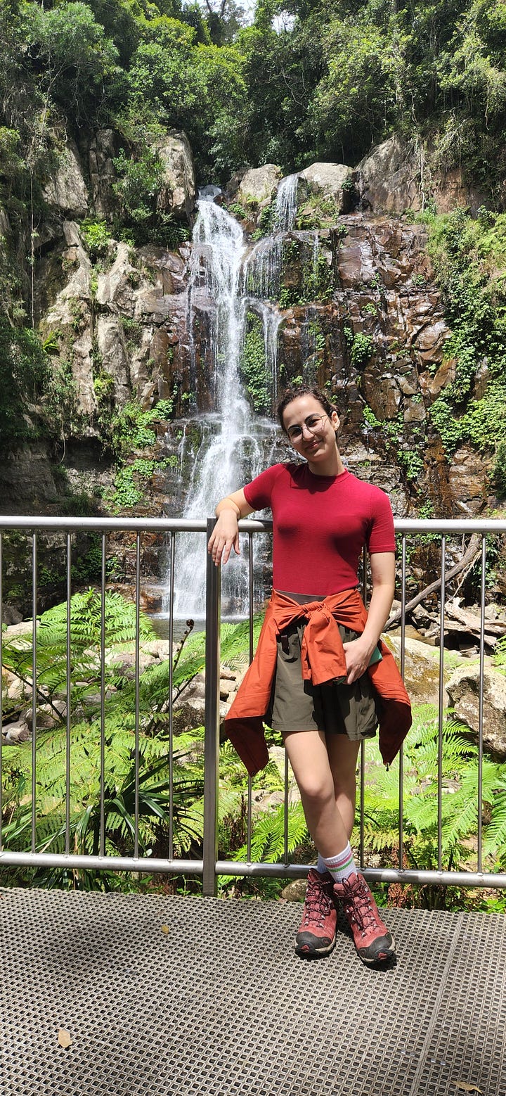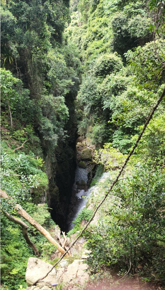 4.2km return, Grade 3, and only 1 hour drive from Byron Bay. Of course, this trail is very popular! The trail goes through a dense, rich green rainforest, over a lot of stairs (very well maintained), and leads to the magical Unicorn Falls. The name of the trail is a big hint — we had an ‘aahhh’ moment when we saw the colour of the waterfall. It’s uniquely bright and sparkling.