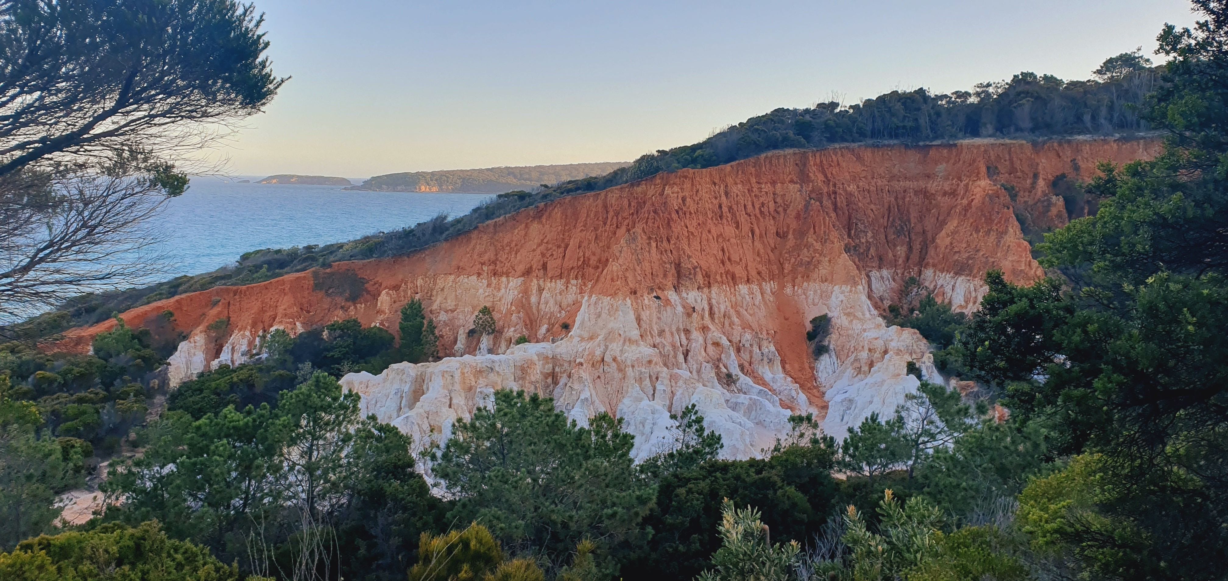 The trail takes you to 2 main lookouts to see a large hill (or a small mountain) with severe erosion, revealing two (or three, if your eyes are good) layers of colours on a sheer wall. Orange at the top (red gravel clay), cream in the middle, and white at the bottom, the Pinnacles is a natural artwork.