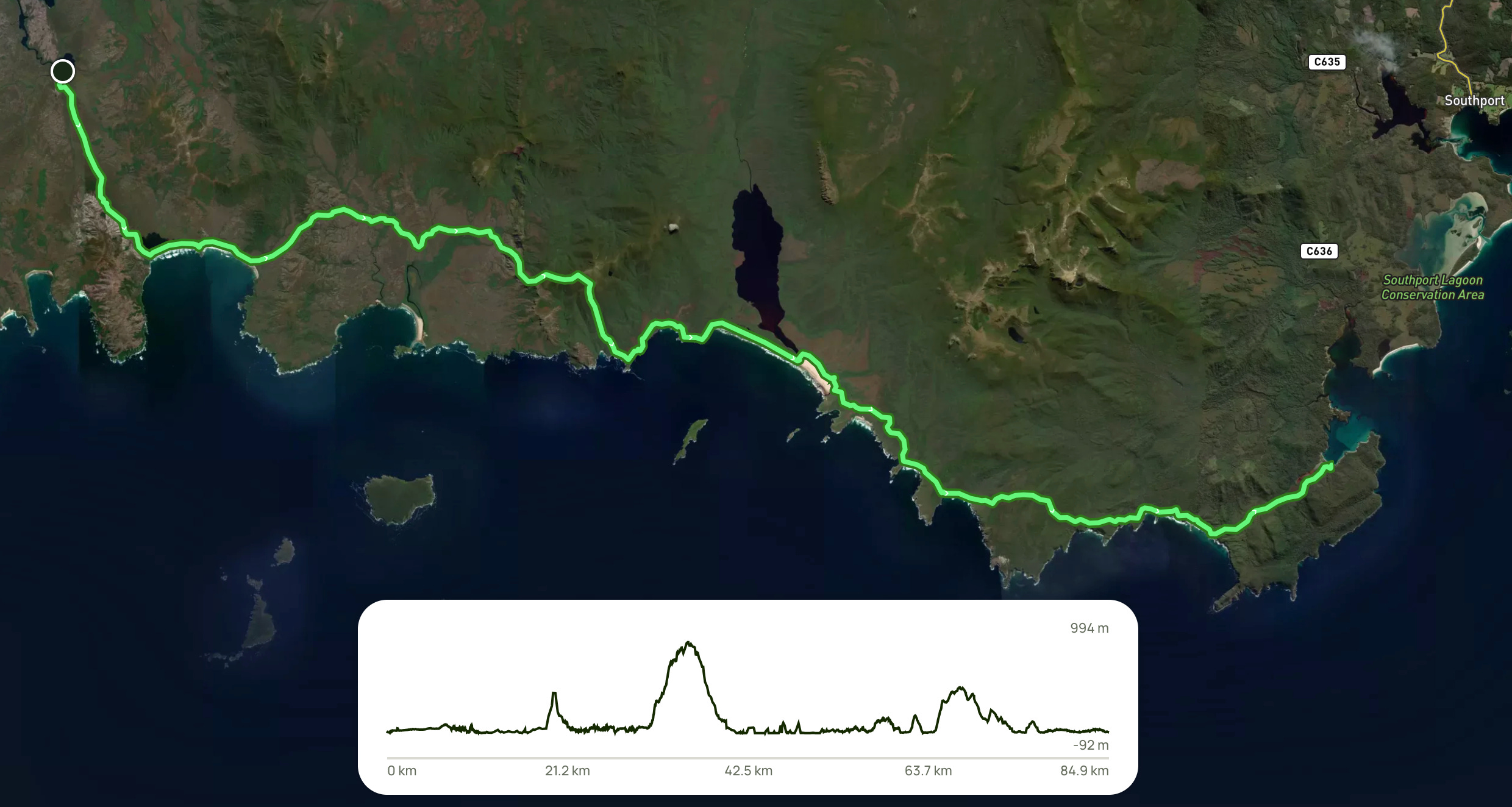 Length: 86km, one-way.