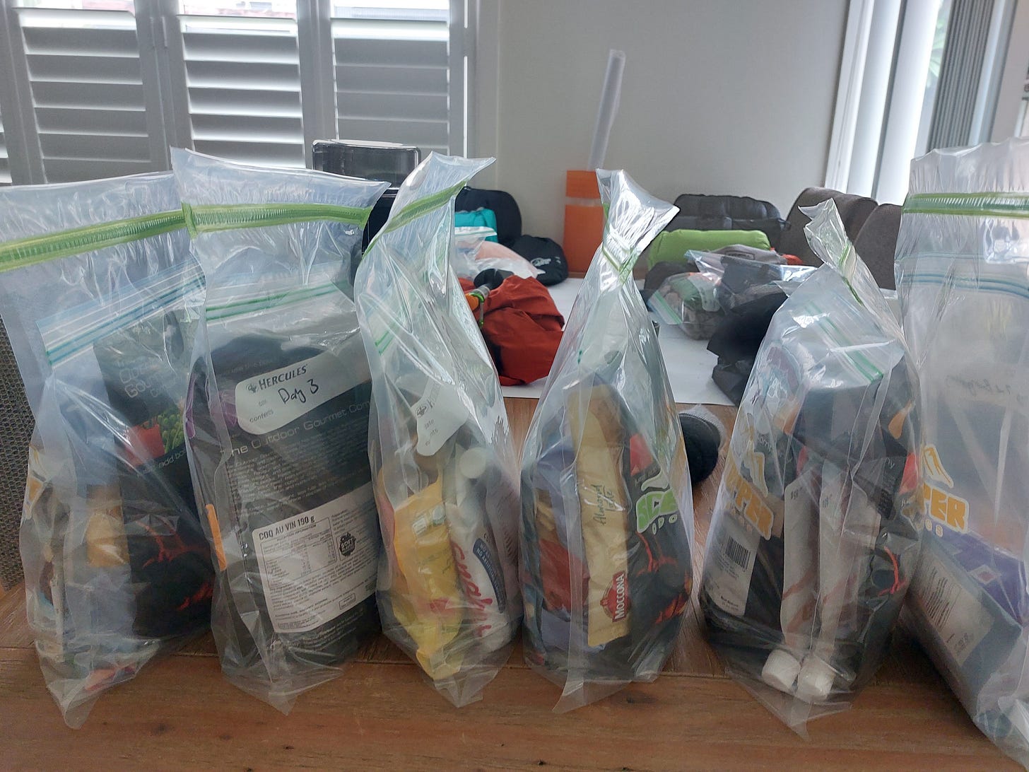 Tips: Seal each day’s portion of food and mark it as “Day 1” etc. Bring a separate “no smell” seal bag for rubbish. You won’t have to hang your food off a branch to try to protect it from animals (mostly rats) stealing.