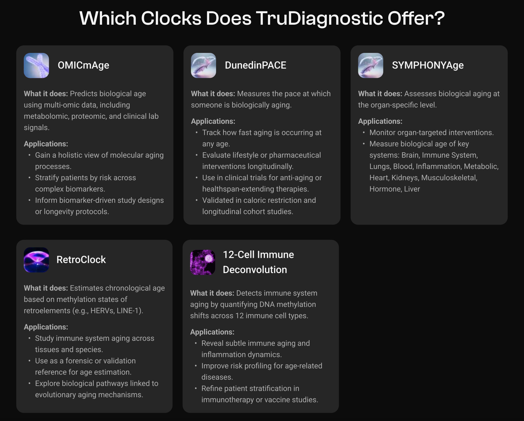 To bring everyone on the same page, TruDiagnostic is a US-based company that specialises in epigenetics and biological age testing. They have 2 main products.